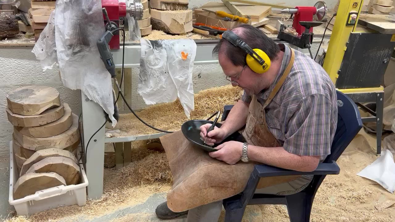 Håndlaget liten treskål (150 mm) dreid av naturlig tre og behandlet med bivoks