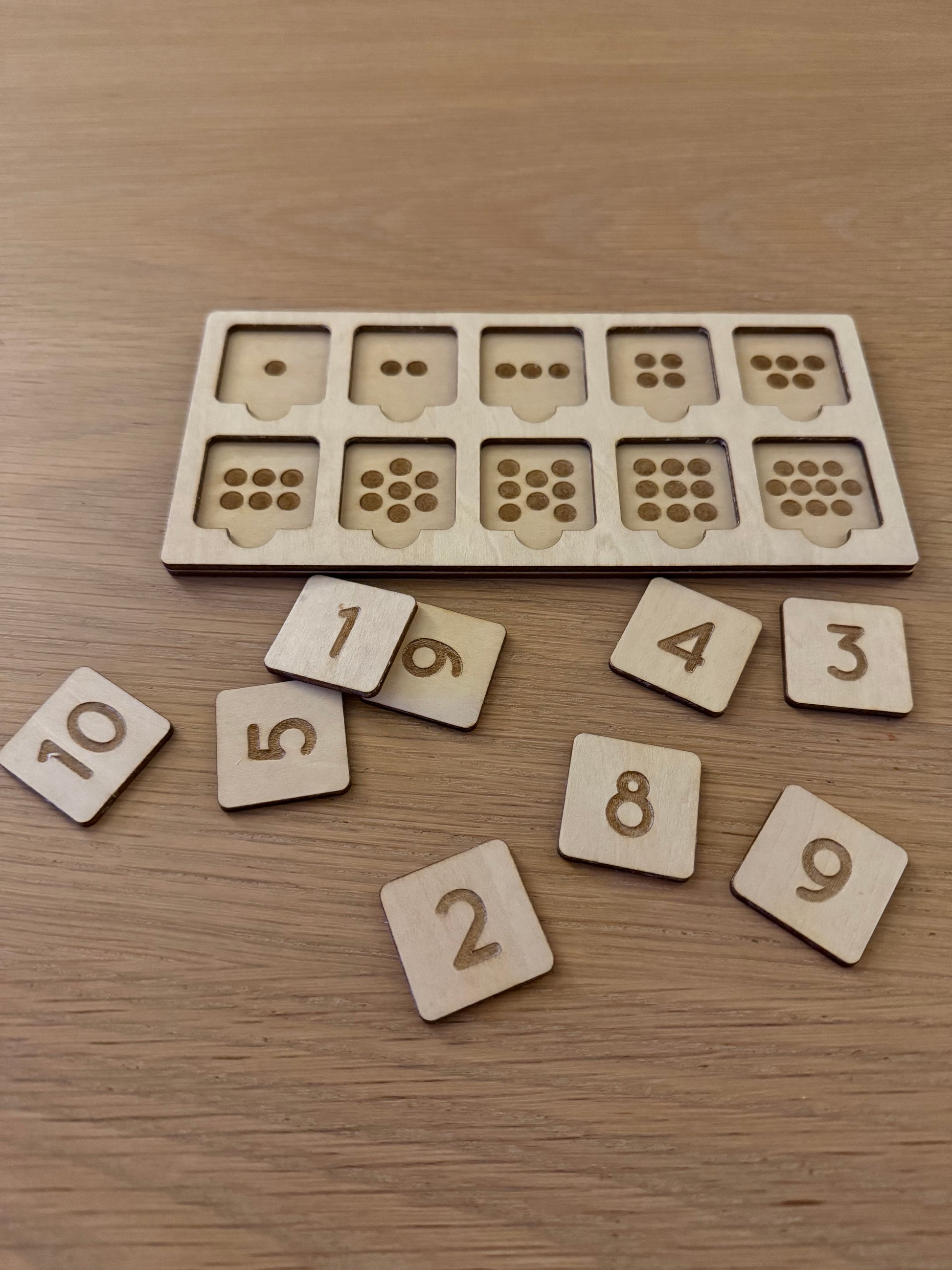 Et sjarmerende og lærerikt tallspill laget i tre, perfekt for de yngste som skal lære å telle og kjenne igjen tall.